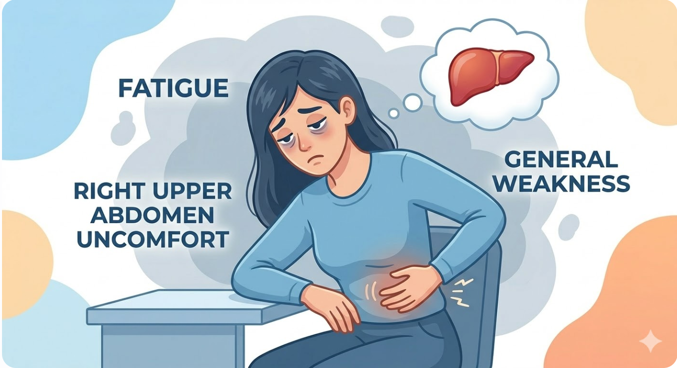 - 상복부 불쾌감: 오른쪽 윗배가 가끔 뻐근하거나 꽉 찬 듯한 느낌이 듭니다.