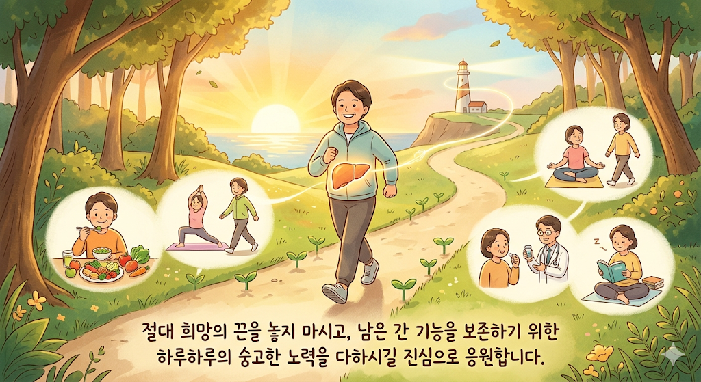 절대 희망의 끈을 놓지 마시고, 남은 간 기능을 보존하기 위한 하루하루의 숭고한 노력을 다하시길 진심으로 응원합니다.