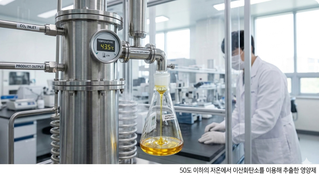 원료가 되는 마리골드 꽃이 어디서 재배되었는지 확인하세요. 특히 '저온 초임계 추출' 방식인지가 중요합니다. 고온에서 화학 용매(헥산)를 사용하여 추출한 제품은 잔류 용매의 위험이 있고 원료가 산패될 가능성이 높습니다. 50도 이하의 저온에서 이산화탄소를 이용해 추출한 제품이 가장 신선하고 안전합니다.